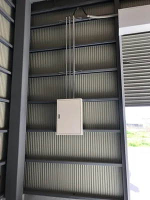 今回は稲沢市内に新築された倉庫にて、「車屋を開業するため、動力電源を引き込みたい」とのご依頼をいただき、動力電源工事および分電盤新設工事を施工いたしました。